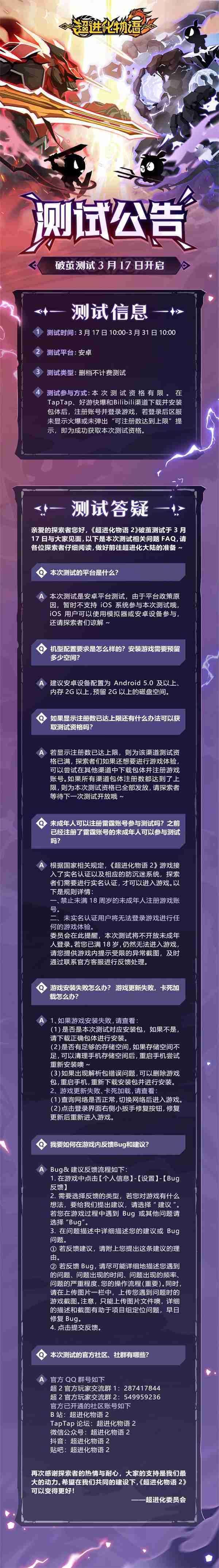 《超进化物语2》首次限号不计费删档测试——「破茧测试」将于3月17日开启,,,随我们确认测试细节,,,明天迈出踏上超进化大陆的第一步吧!!