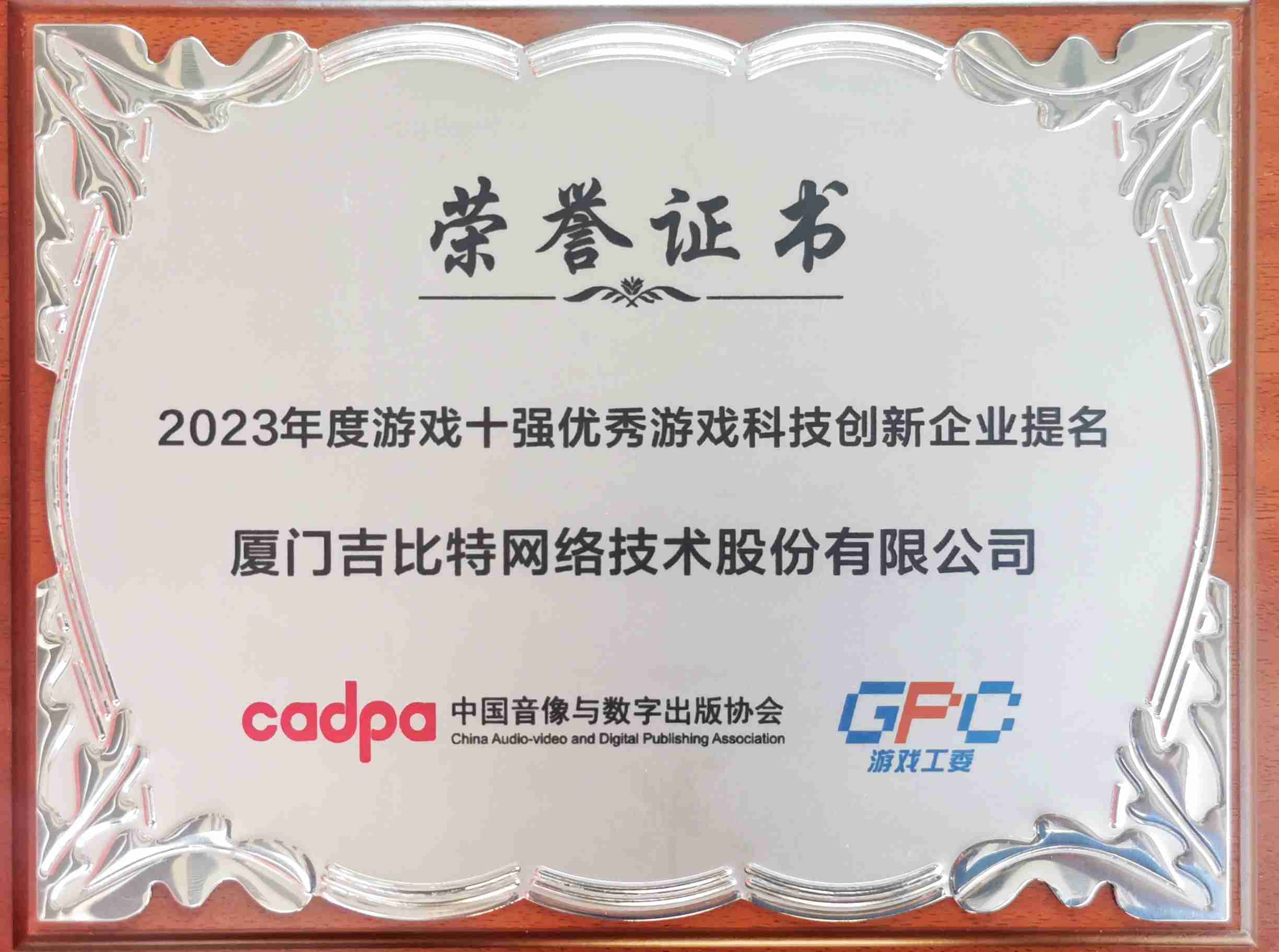 12月14日,,由中国音像与数字出版协会主办,,中国音数协游戏工委、、、、中国游戏产业研究院承办的“2023游戏十强”评选结果正式发布。。。“游戏十强”在我国游戏产业界享有“中国第九艺术封神榜”美誉,,,其评选秉承公开、、、、公平、、、公正的原则,,,,因其代表性、、、影响力、、公信力被誉为中国游戏产业最高奖项。。。。继2022年度入围后,,JIUYOU.COM今年再次获得“优秀游戏科技创新企业”提名,,,,研发创新实力获得肯定。。。